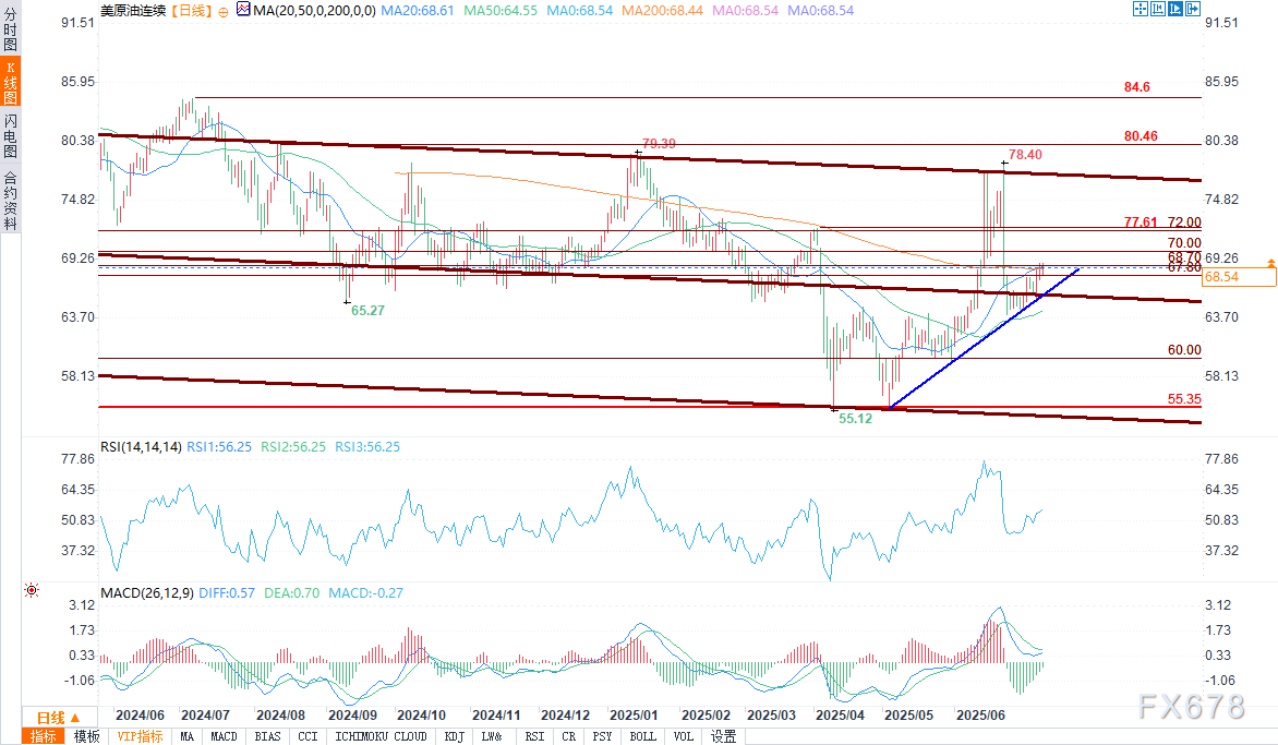 在动能的支撑下,买家将寻求把涨幅扩大至70.00整数关口和72.30。