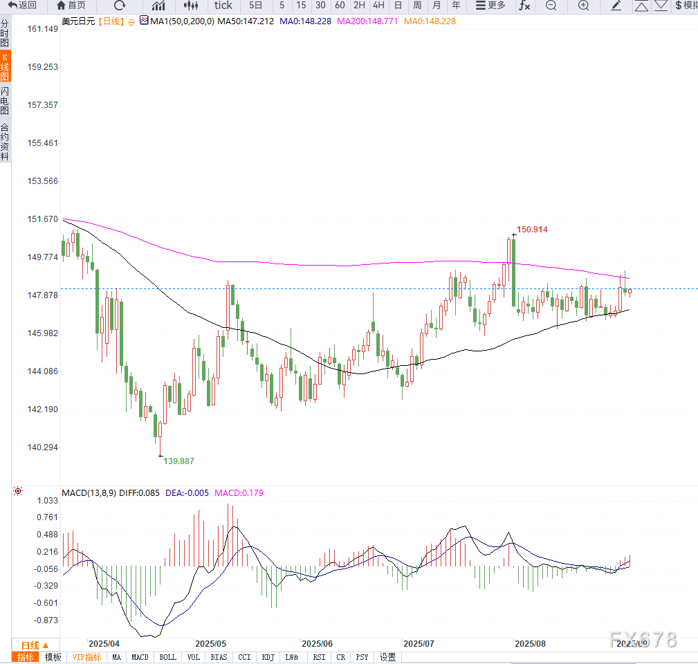 编辑观点: 目前USD/JPY走势受双重力量牵制:一方面,美联储降息预期削弱美元;另一方面,日本央行政策与政治不确定性削弱日元。 短期来看,汇价可能维持在148.00至149.50区间震荡,真正的突破点将取决于周五的非农就业数据。如果非农明显不及预期,美元或遭遇进一步抛售,日元可能迎来一波修复性反弹。