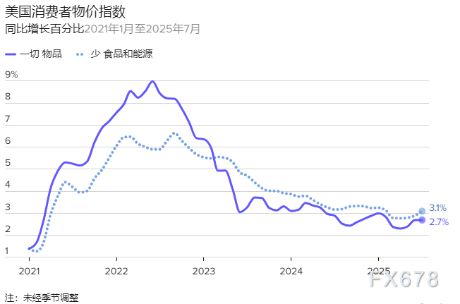 尽管通胀已从2022年6月同比9.1%的峰值回落,但自2022年7月以来价格累计涨幅仍达约9%,持续对家庭预算构成压力。 与此同时,就业增长已出现放缓。纽约联储主席约翰·威廉姆斯指出,这凸显出美联储在平衡“稳定物价”和“充分就业”双重使命时面临的挑战。 Bankrate金融分析师斯蒂芬·凯茨表示,因此周四的CPI报告将成为今年“最具影响力”的经济数据之一,尤其考虑到食品杂货等必需品和电力等服务价格可能重新加速上涨的前景令人深感忧虑,特别是在劳动力市场增长放缓且失业率上升的背景下。 核心CPI是关键 剔除食品和能源价格波动的“核心”通胀率预计在12个月内攀升3.1%,与7月涨幅持平,为自2月以来的最高水平。 若报告符合预期,数据将显示通胀率仍高于美联储2%的年度目标水平,且朝着错误方向发展。美国总统特朗普今年早些时候实施的关税措施提高价格由于商家将进口税成本转嫁给消费者。 经济学家正关注关税对“核心商品”通胀类别的影响,该类别衡量人们购买的商品(与服务及住房相对),同时剔除了食品和能源价格——这些价格可能因非通胀趋势因素而波动。在疫情暴发前,核心商品价格往往持平或负增长,因为廉价进口商品压低了服装和电子产品等商品的价格,从而抑制了整体通胀。但今年夏季,核心商品价格出现上涨,预测人士预计这一趋势将持续下去。 德意志银行美国高级经济学家Brett Ryan在评论中写道:“我们将主要关注核心商品类别中关税影响的持续迹象。” 美联储如何应对 通胀报告几乎肯定会影响利率前景,并将受到美联储官员的密切关注,他们将于本月晚些时候召开会议,制定美联储的货币政策。 金融市场普遍预期美联储将在9月会议上进行今年首次基准利率下调,此举旨在降低短期贷款成本以刺激经济增长防止今年夏季招聘放缓避免演变成失业率激增。美联储被国会赋予保持低通胀和高就业率的双重使命。 美联储官员可能不愿将基准利率从当前4.25%至4.5%的区间下调过多。当前利率处于高位的原因是美联储官员希望通过抑制借贷和消费来将通胀率压低至2%的目标水平。政策制定者可能担心过快地大幅降息会进一步推高通胀率,该指标自2021年以来就未曾达到或低于2%。 野村证券发达市场经济学家David Seif在一份评论报告中指出:“关税引发的商品通胀压力与服务价格黏性并存,可能导致政策制定者对通胀风险保持警惕态度。” 未来几个月的通胀数据将指引美联储今年剩余时间的政策走向。 降息在即:借贷成本下降可期,未来路径仍存变数 尽管存在对物价上涨的担忧,但根据实时追踪美联储政策预期的CME FedWatch工具显示,市场认为降息25个基点基本已成既定事实。 此举将使美联储基准利率降至4%-4.25%区间,从而降低信用卡、汽车贷款及其他融资类型的借贷成本。展望更远期,市场预计到2026年至少还将有一到两次降息。 对家庭而言,影响不会立竿见影:信用卡利息可能在一两个账单周期内下降,而汽车和个人贷款可能需要数月时间调整。初期节省金额可能较为有限——比如每月信用卡账单减少几美元——但若后续继续降息,节省幅度将会扩大。 美联储主席杰罗姆·鲍威尔将当前4.25%-4.5%的基准利率称为“限制性水平”。随着就业市场走弱,降息旨在防止经济放缓进一步恶化。 美联储理事克里斯托弗·沃勒对此举表示支持,他上周接受CNBC采访时表示:“劳动力市场已明显疲软。” 沃勒表示:“通常劳动力市场恶化时,衰退会迅速来临……因此我认为需要在下次会议开始降息,我的预测中完全没有经济衰退,但确实看到全年增长放缓,这主要源于关税影响。” 尽管沃勒承认关税可能推高物价,但他也表示这更可能是一次性冲击,而非持续的通胀来源。 凯茨指出:“虽然9月降息几乎已成定局,但未来进一步降息远非板上钉钉。若出现一连串高于预期的通胀报告,政策重心可能重新转向控制物价飙升。”