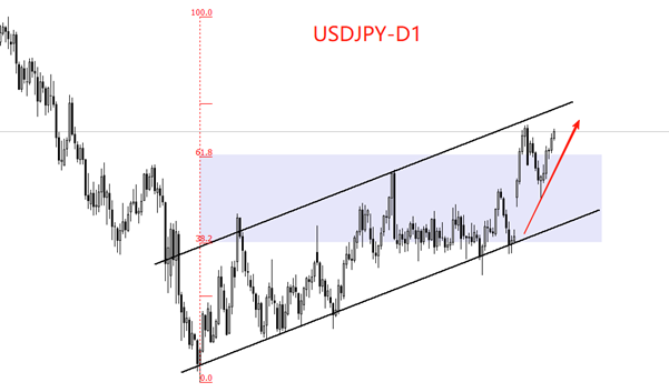 10月24日16:21的USDJPY日线走势图-XM 技术角度角度看,USDJPY中期趋势为多头,K线运行于图中上升通道内部。在通道上下轨道被突破之前,维持多头趋势判断。本月以来,短期上涨波段从通道下跪向通道上轨运动,未来有可能与上轨交叉。10月10日~17日曾出现短暂的回调走势,但被随之而来的连续阳K线吞没,短期走势仍由买入力量主导。 XM风险提示、免责条款、特别声明:市场有风险,投资需谨慎。以上内容仅代表分析师个人观点,不构成任何操作建议。请勿将本报告视为唯一参考依据。在不同时期,分析师的观点可能发生变化,更新内容不会另行通知。